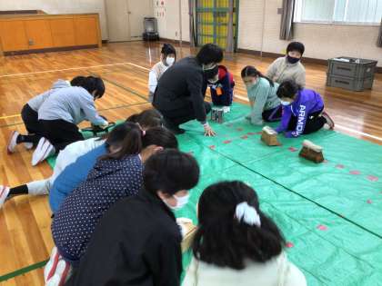 「これは何だろう」「どうやって使うのかな」と考えたり、教えていただいたりしながら、昔の道具体験をしました。