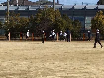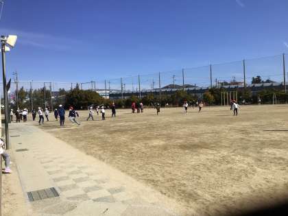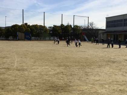 青空の下、子ども達の声が運動場に響いています。風が冷たいですが、子ども達は元気です。