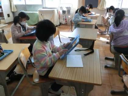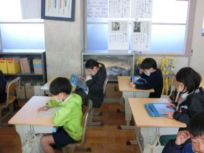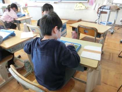 やはり、先週金曜日の写真です。学習用タブレットを使って漢字の復習・練習をしていました。