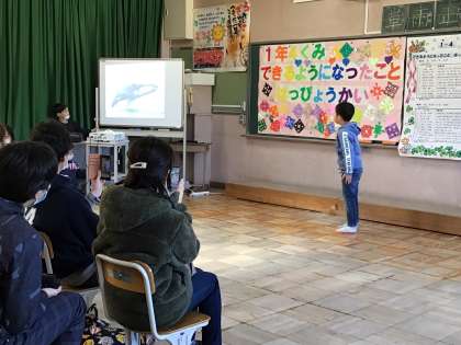 この1年でたくさんのことができるようになりました。発表する子も友達の発表を見て応援する子も、みんなとてもよい表情でした。