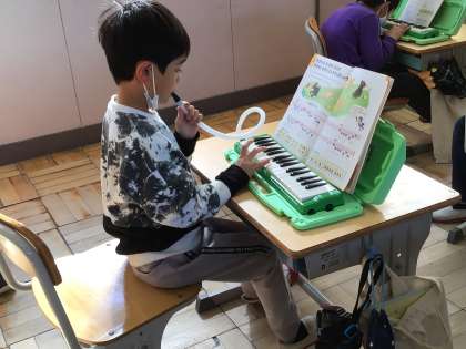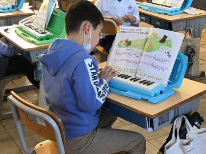 リズム、指づかい、タンギングに気を付けて、鍵盤ハーモニカの演奏をしました。