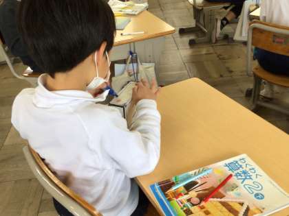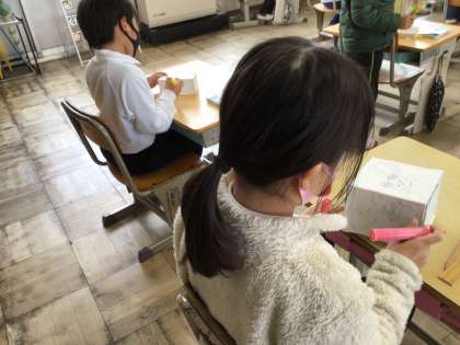 辺にペンで色をつけながら、辺の数を確かめました。