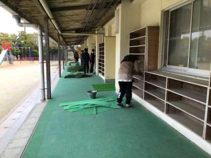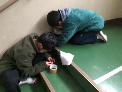 6年生が、特別教室や体育館、階段などを清掃しています。「6年間の感謝の気持ちを込めて、お世話になった校舎をきれいにします」と話してくれました。