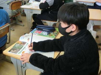 日本の国土の多くを占める森林と私たちの生活とのつながりを学んでいました。