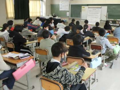 在校生の歌である「大空がむかえる朝」を歌っていました。まだ、楽譜や歌詞を見ながら覚えている段階ですが、この後、どんどん上手になっていくと思います。