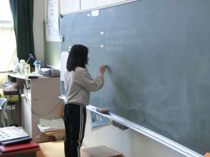 中学校になると方程式として解く問題です。小学校では、x(エックス)やy(ワイ)ではなく、□(しかく)を使いますが、考え方は同じです。この日は、自分たちが作った文章問題を解き合っていました。