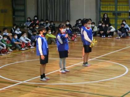 まずは、2年生が出し物を披露しました。6年生が2年生だった頃を楽しく振り返るという内容でした。