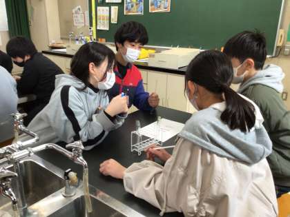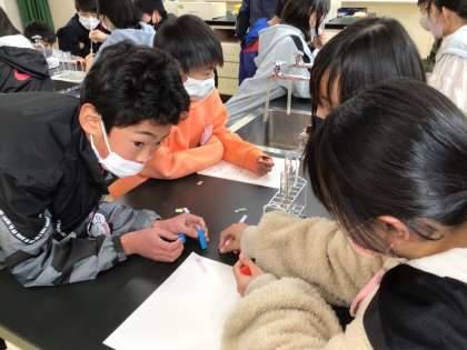 卒業を前に、6年生が校長先生の授業を受けました。生活で使う身近な洗剤が酸性か中性かアルカリ性かを予想しました。実験をして確かめました。何性かにはそれぞれ訳があります。
