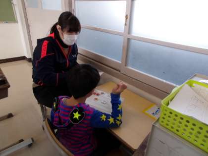 具体物を使って、本人に合った学習課題に取り組んでいます。