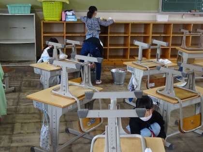 様々な荷物などを廊下に出し、床・ロッカー・机などをとことんきれいにしていました。