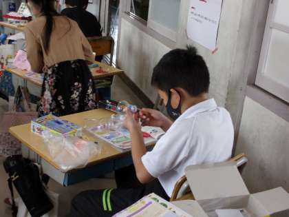 理科の学習を生かして、おもちゃを作っていました。これは、約1週間前の授業の様子です。
