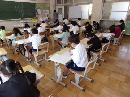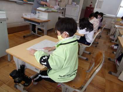 少しずつ、学習も始まっています。このクラスでは、1年生の最後に行ったテストに、再度チャレンジしていました。みんな、3月にはできたはずですが、しっかり覚えているかな?