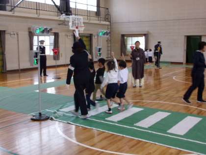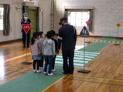 交通指導員の方にお越しいただき、安全な横断歩道のわたり方などを教えていただきました。ありがとうございました。