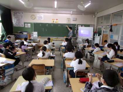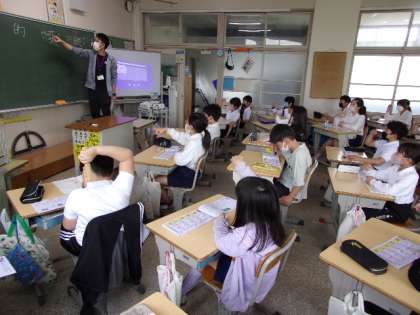 このクラスでは、字形などを確認してから、声を出しながら、そら書きをしていました。もちろん、その後は漢字ドリルで練習です。