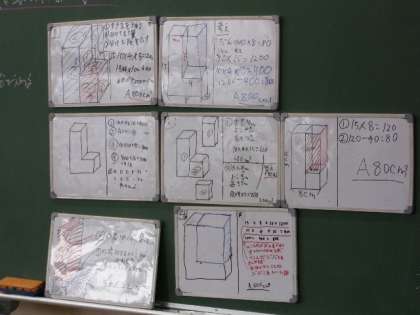 階段型の立体の体積の求め方を考えていました。いくつかの解き方があります。