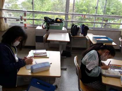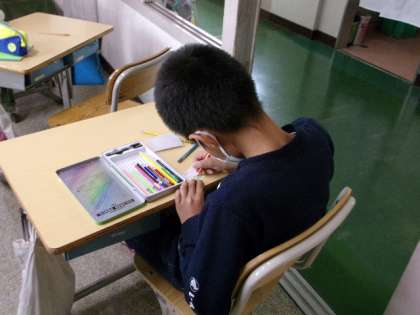 なかよし活動に使うために名札を作っていました。この名札は、明日、デビューします。