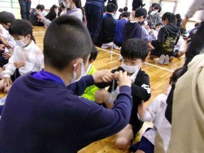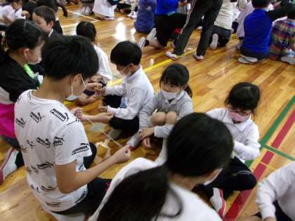 やはり、ふれあいタイムです。わずか15分ほどなのですが、こうしてじっくりと交わることで、6年生の心と1年生の心がつながっていきます。とても、いい笑顔を盛ることができました。
