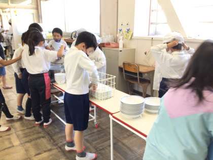 給食当番や係の子は、てきぱきと自分の仕事をします。