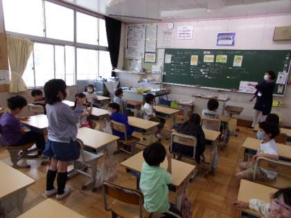 秘密基地のある裏山に行こうと誘う「かんた」。しかし、裏山は危ないから入ってはだめだと言われていることが気になり、迷う「ぽんた」。「ぽんた」の気持ちを考えながら、良いことと悪いことの区別をつけることについて、考えていました。
