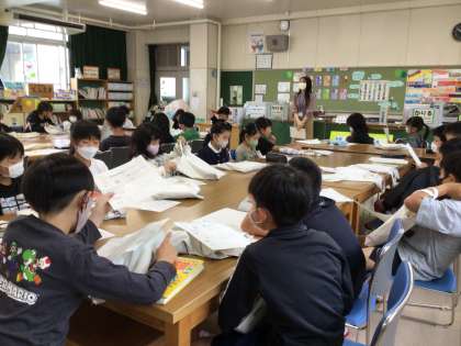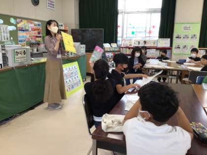 図書館司書さんから、本のラベルについて教えてもらいました。本の背に貼ってあるラベルの番号の意味が分かりました。