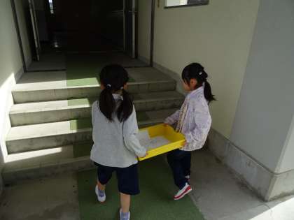 朝、職員室前のポストから、配付物を運んでいました。その後、教室では、朝の会が始まりました。下の写真は、その中で、宿題を回収している様子です。
