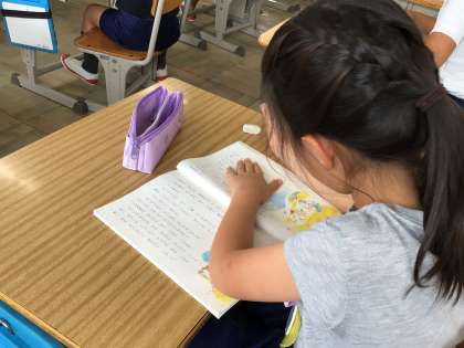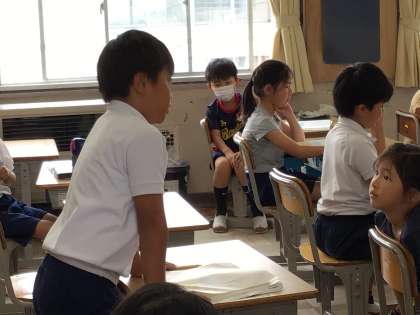 話を読んで場面分けをしました。人物、場所、時間が変わるところを考えながら分けました。