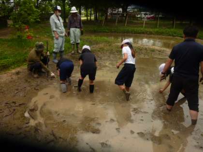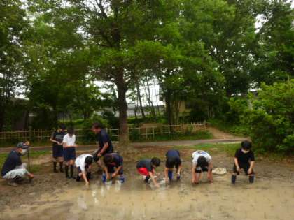 続いて、5年生が田植えに入りました。5年生は、2年生より1本多く、3本を植えました。数日前に代かきを体験していることもあり、なかなか上手に歩いていました。もっとも、地域講師の皆さんはすいすい歩いていましたが…。やはり、何事も経験が大切だとわかります。