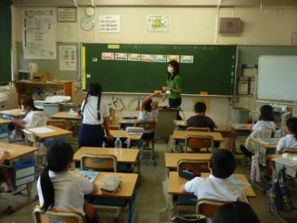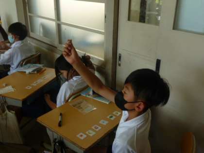 曜日の表現を扱っています。I like Sundayのように、自分の好きな曜日を表現していました。土曜日の好きな子は、Saturdayを発声するのにちょっと戸惑っていましたが、だんだん慣れていきました。