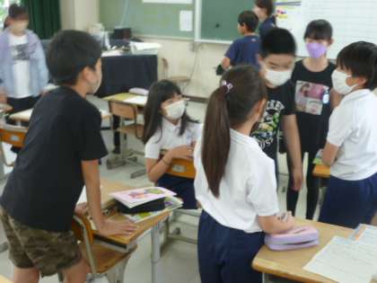 先週の授業の様子です。合奏をするにあたり、グループで楽器を分担しています。