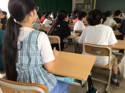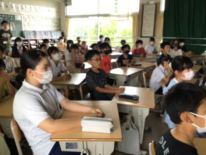 昨日から、末野原中学校の2年生が職場体験に来ています。5時間目には、6年生に末野原中学校の紹介をしてくれました。今日は、6の1です。中学校生活、部活、行事などについて詳しく話してくれました。6年生も興味をもって聞きました。