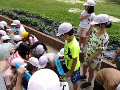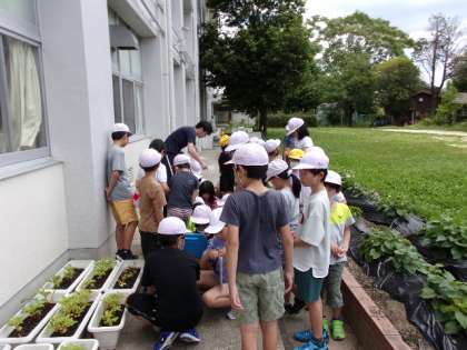 ホウセンカが発芽したので、観察をしました。タブレットもうまく使っていきます。