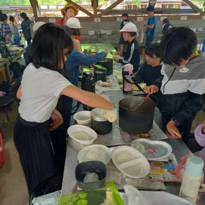 カレーライスが完成しました。お腹いっぱいに食べていました。自分たちで野外で作った食事は、やはり美味しいです。