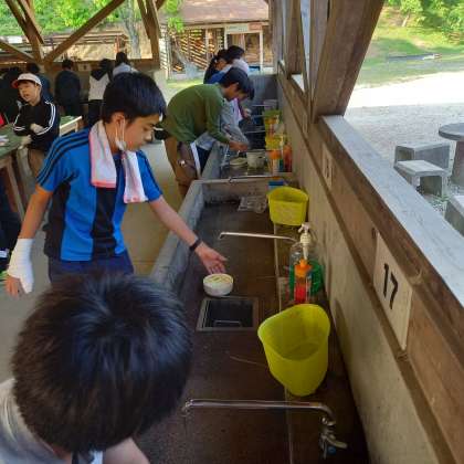 しっかり食べて、片付けに入りました。みんな、頑張っています。