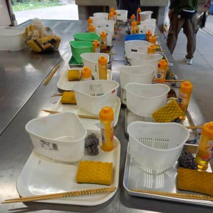 学校の物品も野外センターから借りた物品も、ぴかぴかにして返却します。みんな、頑張って点検をクリアしていっています。かまどだって、点検があります。