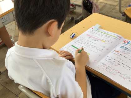 ドリルや算数の友で、復習をしました。みんな一生懸命頑張りました。