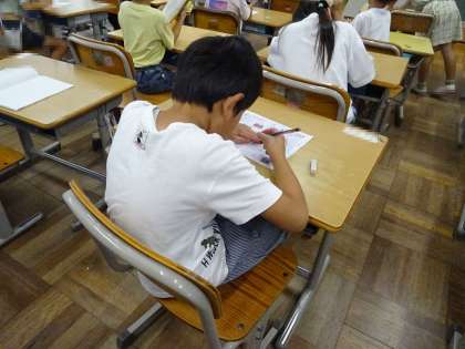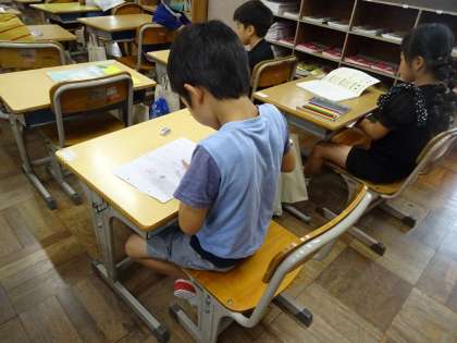 帯学習で、ひらがなの練習をしていました。