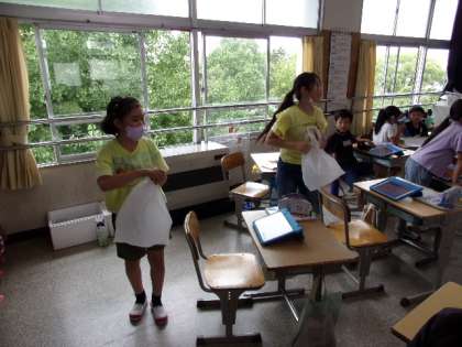 空気でっぽうはなぜ飛ぶのでしょうか?子どもたちは、興味深そうに考えていました。