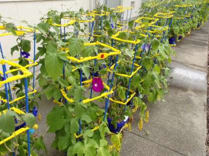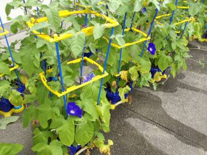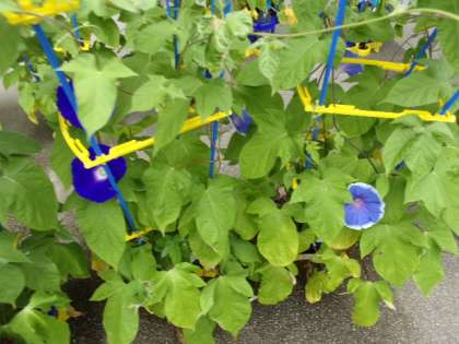 先週くらいから、1年生が育てているアサガオが開花してきました。