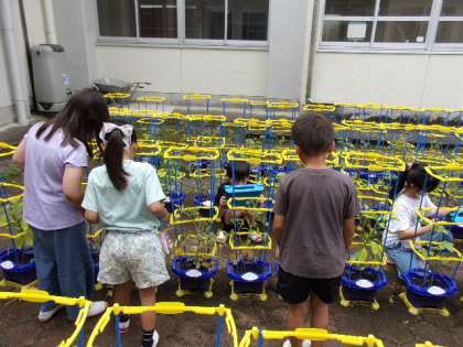 夏野菜の観察記録をとっていました。学習用タブレットも活用しています。