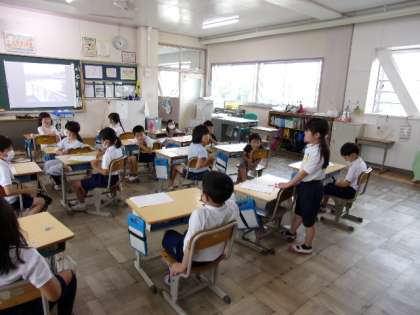 お散歩をしたときに、気づいたこと(発見したこと)を発表しあっていました。カエルなども見つけたようです。