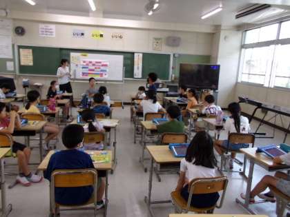 リズムアンサンブルを考えていくために、どんな工夫をしていくと良いのかを確認しています。