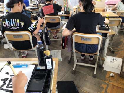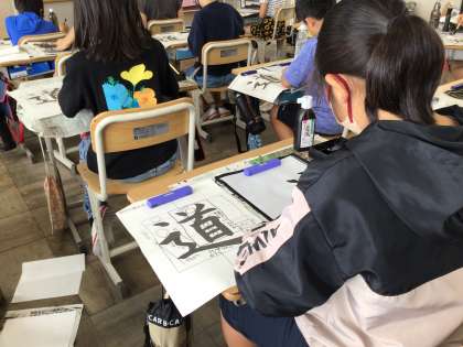 「道」を清書しました。お手本をよく見て、「しんにょう」の形に気を付けて書きました。