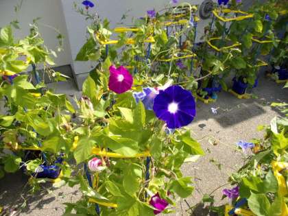 暑い日が続いています。私たち、人間にとっては厳しい限りですが、アサガオにとってはどうなのでしょうか?今日も、見事に咲いていました。