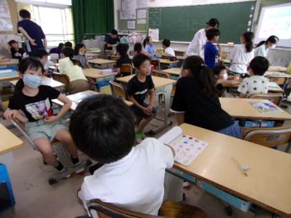 「〜が好きです」「〜が好きではありません」という表現を学んで、みんなで使ってみていました。