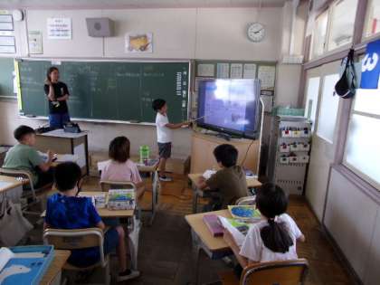 調べた内容を、学習用タブレットでまとめ、必要な資料などを提示しながら、説明していました。