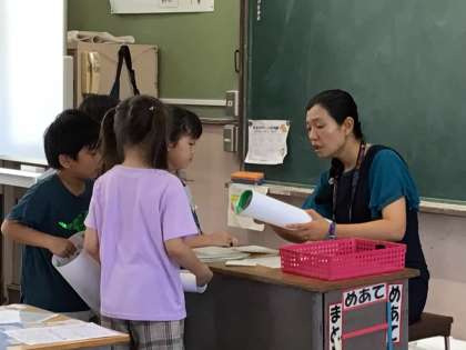 夏休みにがんばった宿題を提出しています。保護者の方々のご協力ありがとうございます。