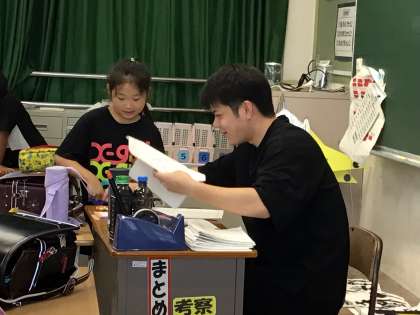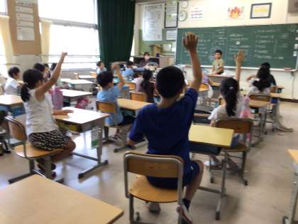 宿題の確認が終わったクラスでは、先生の話を聞いたり、友達のスピーチを聞いたりしていました。