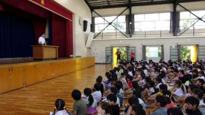 夏休みが終わり、学校生活が始まります。体育館で「夏休み後区切りの会」を行いました。暑くなりそうなので、できるだけ短時間で終わるようにしました。