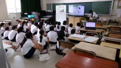 9月、1月の身体計測の際、養護教諭が保健指導を行います。今回、4年生は姿勢がテーマです。
