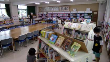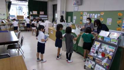 図書室で、本を選んで借りていました。